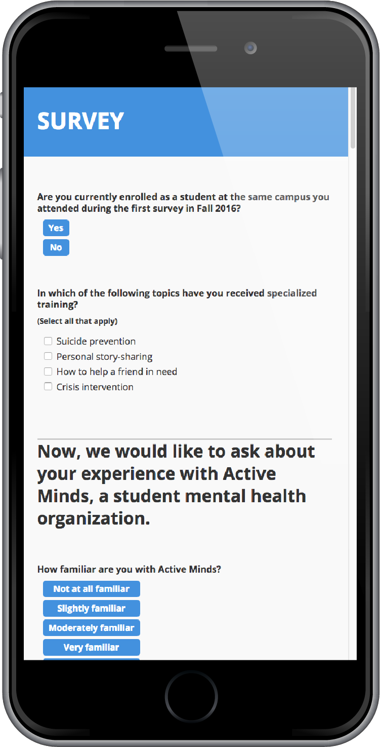 The study was based on an online survey—built, distributed, and managed by 3C—that asked California college students about their familiarity with Active Minds, a national organization that provides support for student-led mental health clubs on college campuses. The survey also assessed students’ attitudes about, understanding of, and personal experiences with mental health issues, both their own and others’.
